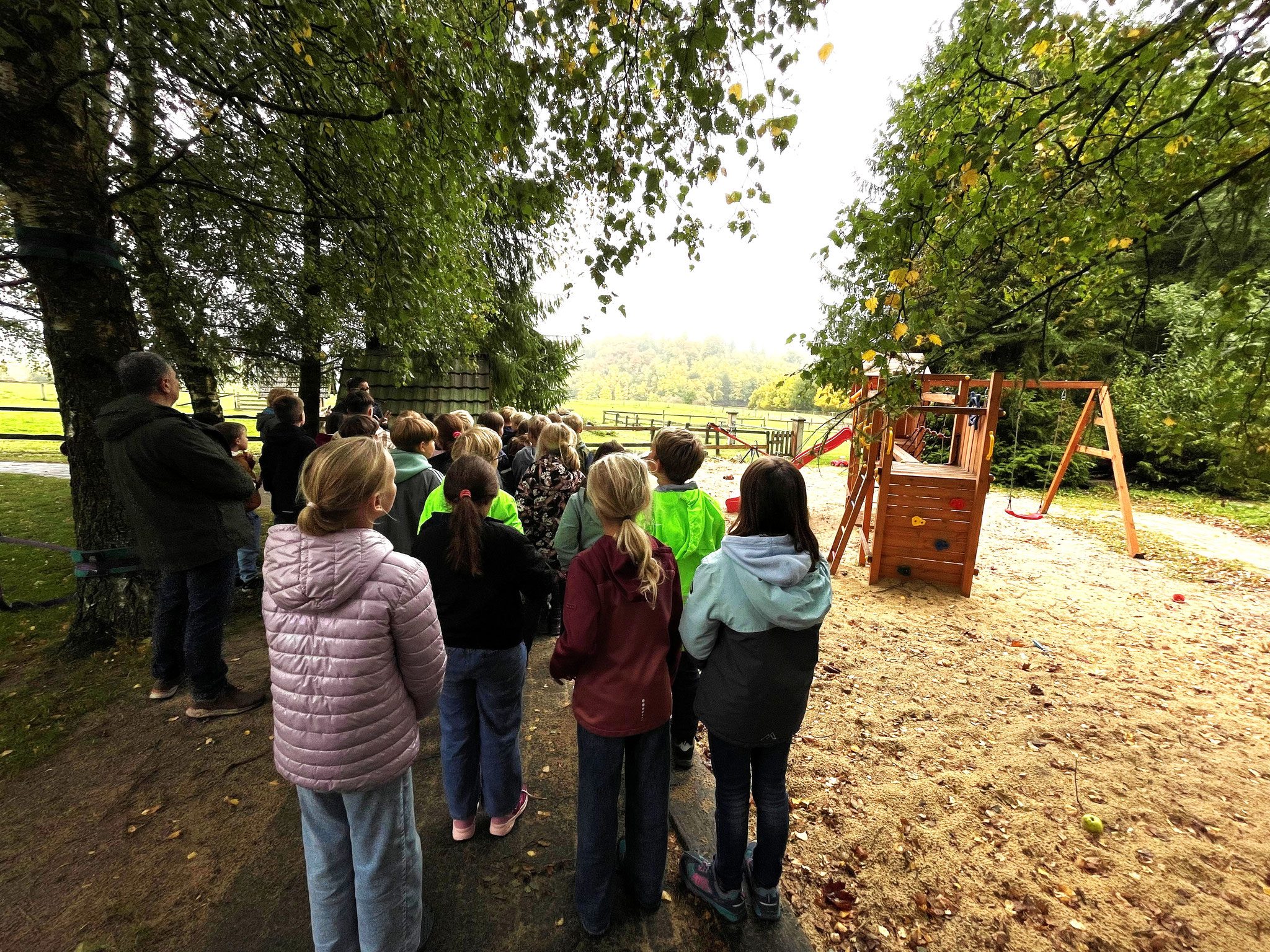 Kurz vor den Herbstferien war es endlich soweit: Unsere Viertklässlerinnen und Viertklässler machten sich auf den Weg ins herbstliche Sauerland – zur Klassenfahrt auf den Ferienhof Homann in Brilon. Drei Tage lang erlebten die Kinder eine aufregende und abwechslungsreiche Zeit: Eine Wanderung mit dem Ranger, Reiten, Tiere füttern und streicheln, Spiele spielen, ein gemütliches Lagerfeuer und sogar eine Trekkerfahrt standen auf dem Programm.