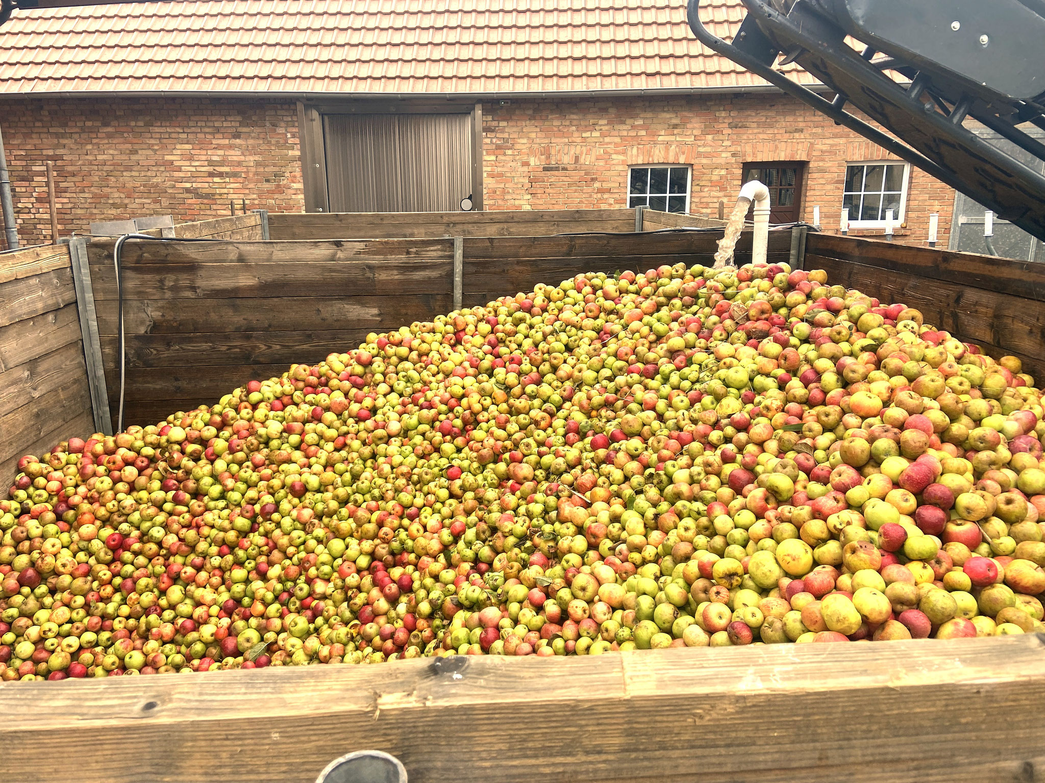 Sie werden in der Obstkelterei Brautmeier sehen, wie aus unseren geernteten Äpfeln Apfelsaft – diesmal in großen Mengen - gemacht wird.