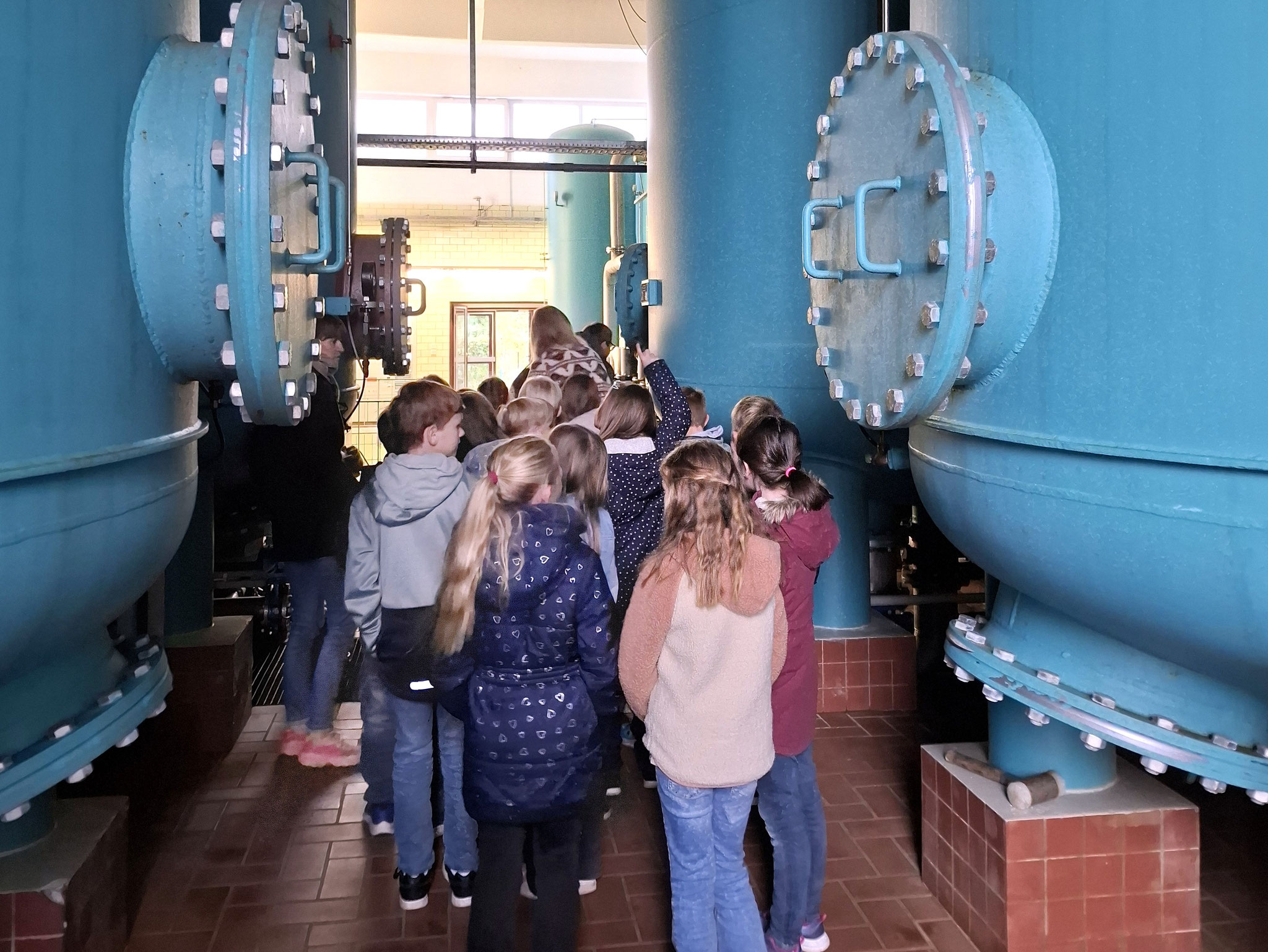 Bei ihrem Unterrichtsgang zum Wasserwerk am Freitag, 26.09.2025 lernten die Kinder der Klasse 3a und 3b das Wasserwerk und die Aufbereitung des Trinkwassers kennen. Empfangen wurden sie herzlich von einem Team aus Mitarbeiter*innen, die die Kinder durch den Vormittag begleiteten. Im Wasserwerk konnten sie u.a. riesige Wassertanks bestaunen sowie eine große Wand mit der Steuerung für die Filteranlagen für ganz Delbrück, also 30.000 Leute. Zum Abschluss gab es für alle ein frisches Glas Wasser, direkt aus dem Tank gezapft.