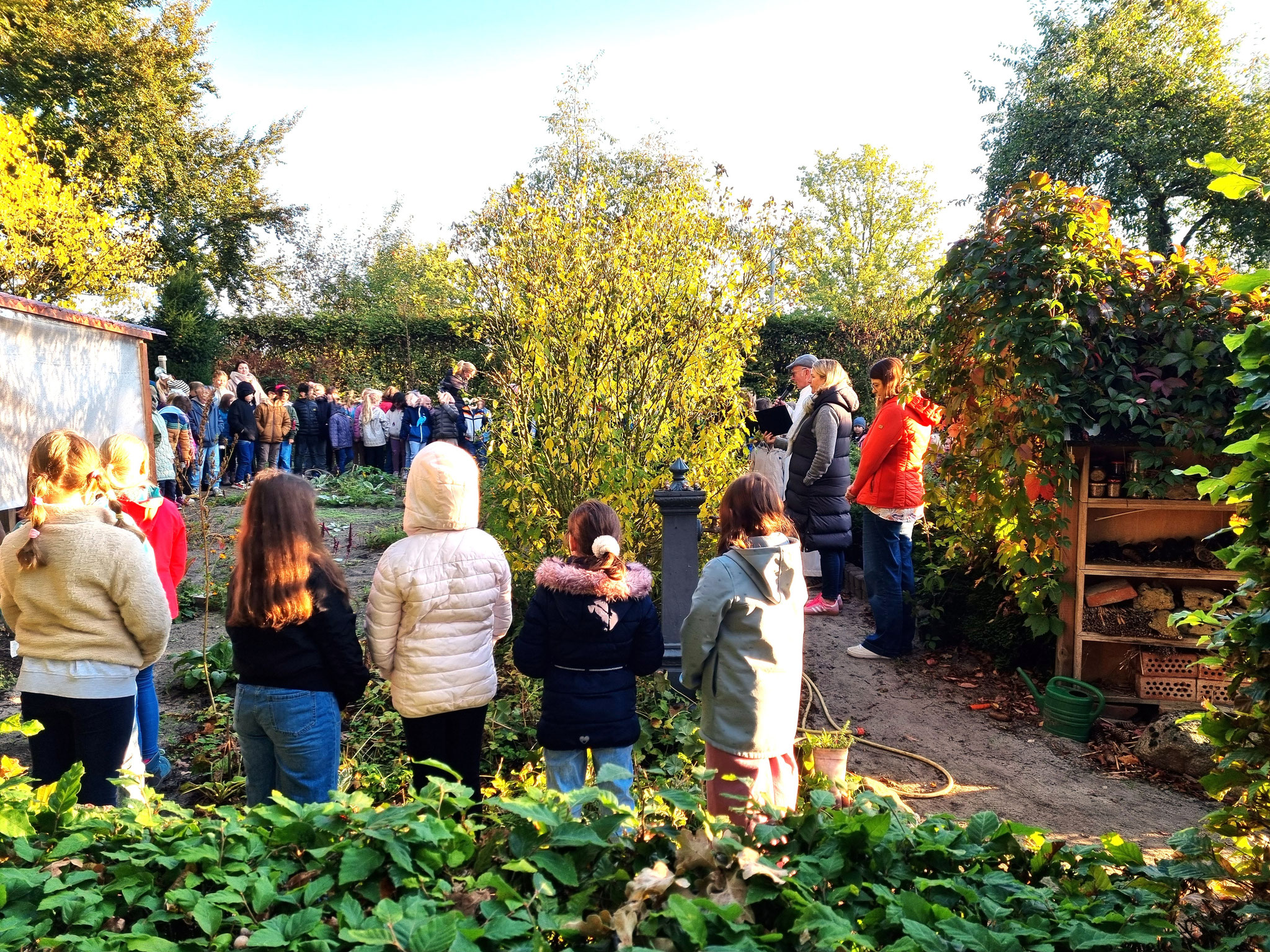Den feierlichen Abschluss bildete ein gemeinsames Dankgebet im Schulgarten, das alle Schüler*innen und Lehrerinnen zusammen mit Herrn Laskowski sprachen. Ein schöner Moment der Gemeinschaft und Besinnung, der uns noch lange in Erinnerung bleiben wird.