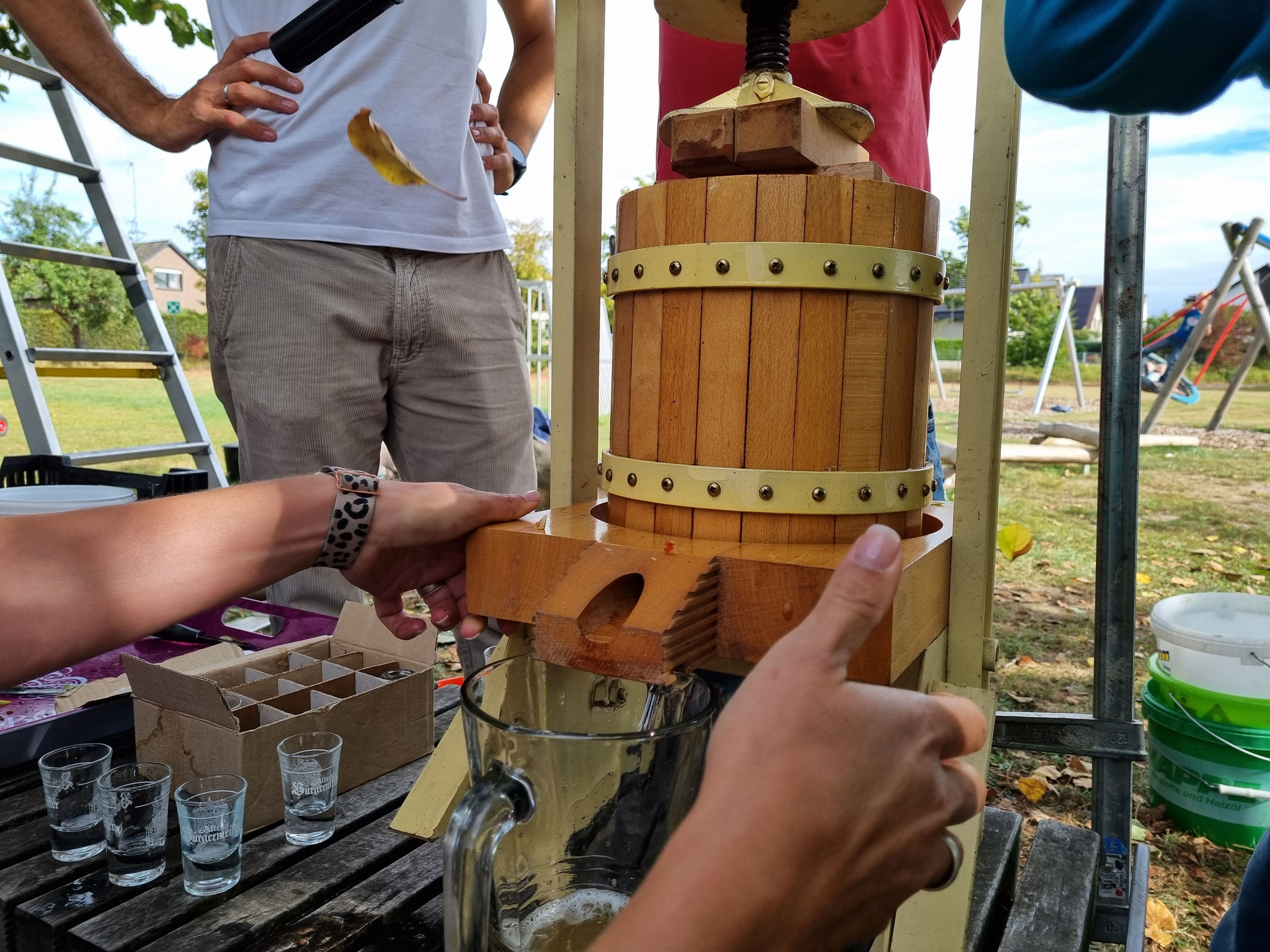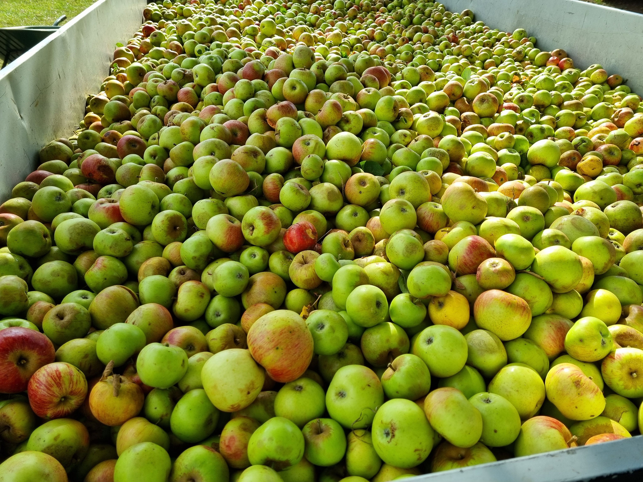 Sie werden in der Obstkelterei Brautmeier sehen, wie aus unseren geernteten Äpfeln Apfelsaft – diesmal in großen Mengen - gemacht wird.