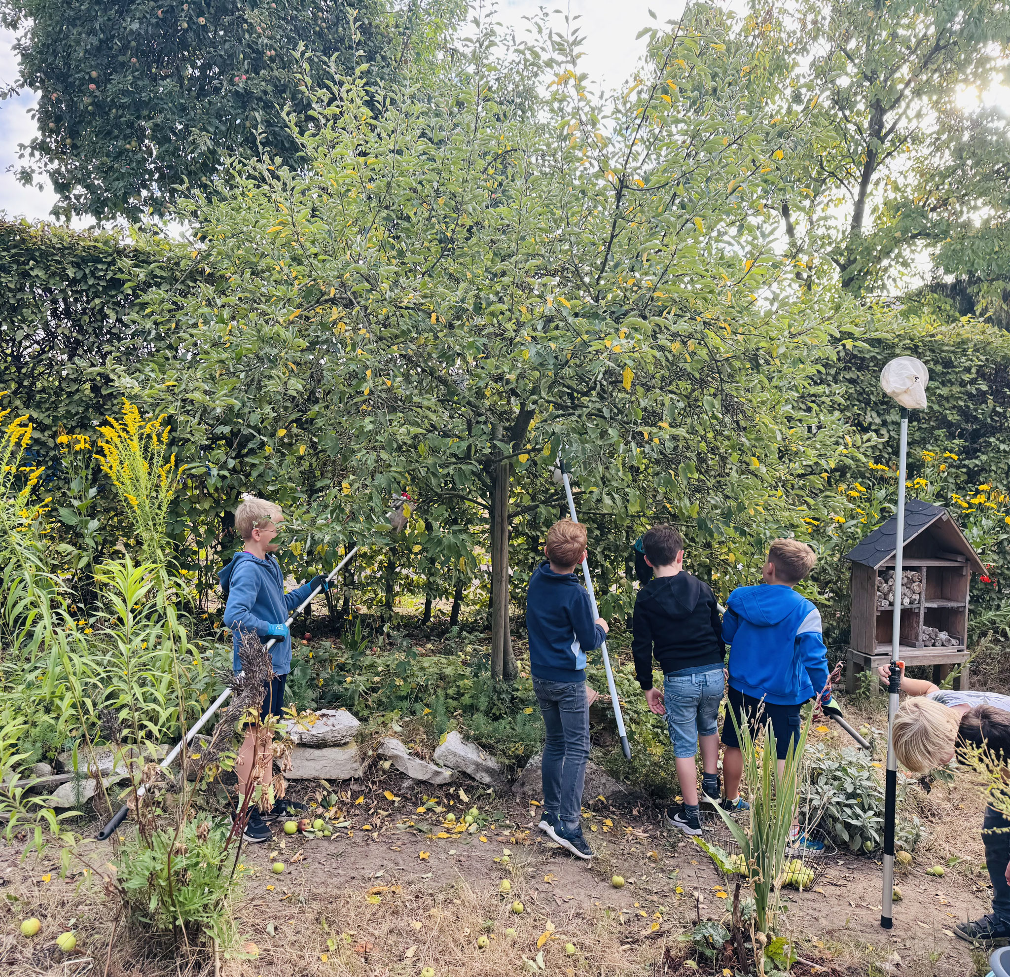 Dank des engagierten Einsatzes zahlreicher Eltern konnten in diesem Jahr wieder viele Äpfel auf unserem Schulgelände geerntet werden. Alle Schüler*innen des Jahrgangs 2 hatten großen Spaß, die Äpfel aufzusammeln und in den bereitgestellten Anhänger zu bringen.