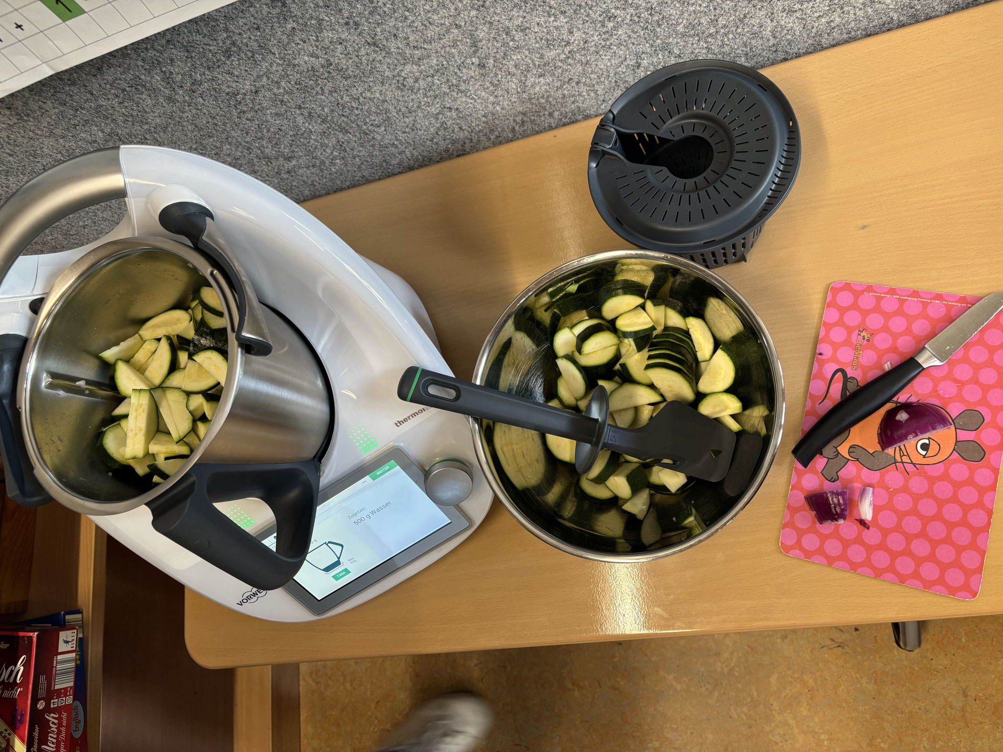 Unsere diesjährige Umwelt-AG hat das letzte Gemüse geerntet, um den Schulgarten langsam auf den Winter vorzubereiten. Doch was lässt sich aus Zucchini, Zwiebeln und Co. Leckeres