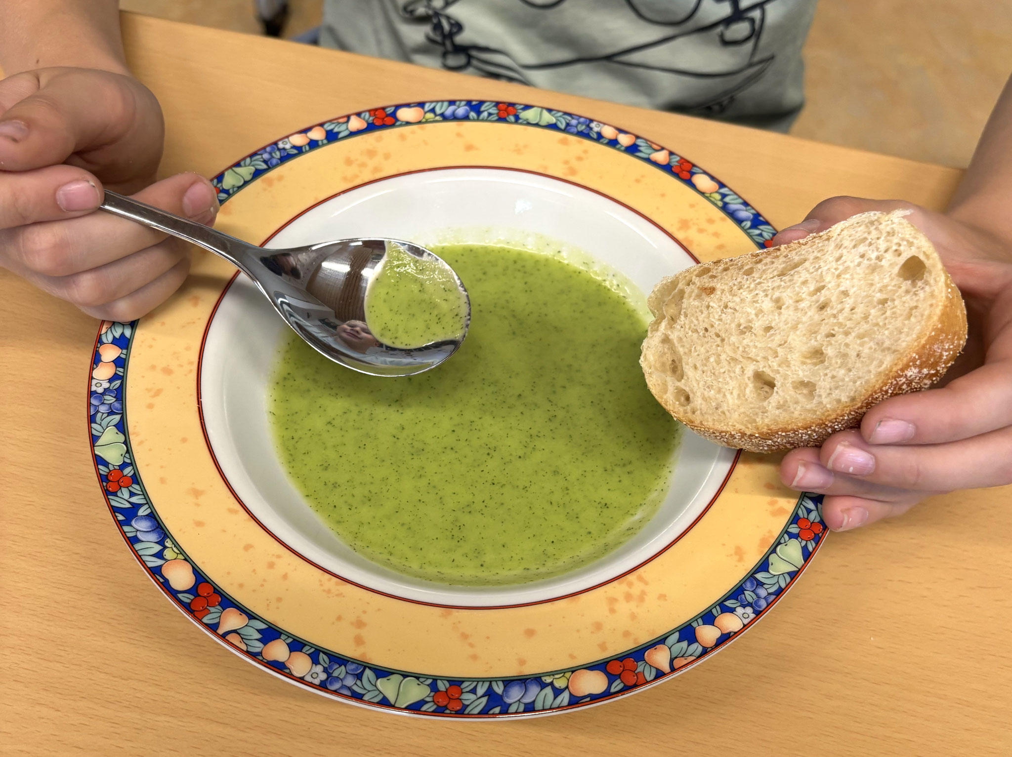 Gemeinsam mit Frau Schlüter und Frau Merschmann machten sich die Kinder ans Kochen. Mit viel Eifer wurde geschnippelt, gerührt und probiert. Und das Ergebnis konnte sich